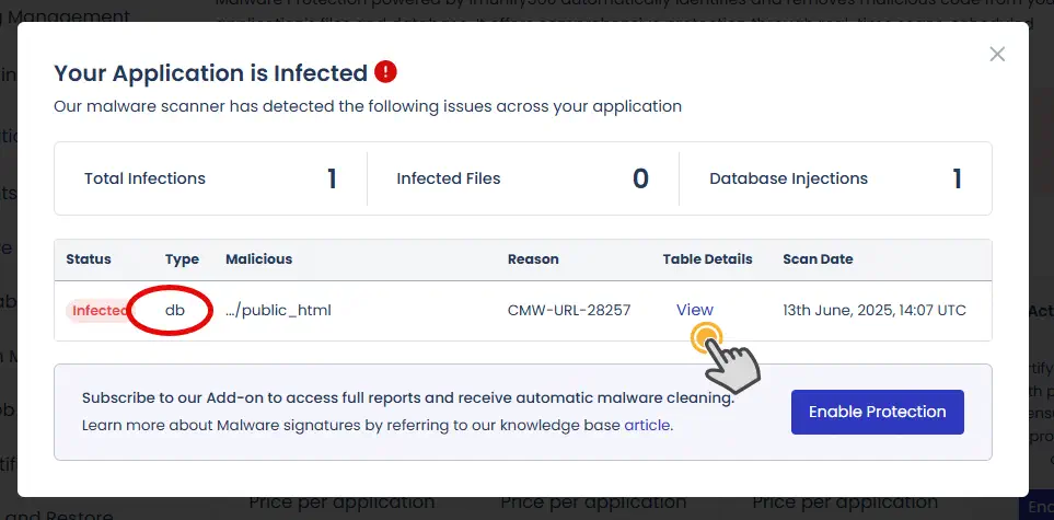 - “Your Application is infected with malware”라는 문구가 있다면 View Details 클릭